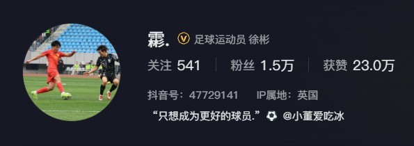 開啟留洋之路,徐彬社媒IP地址已顯示在英國(guó)