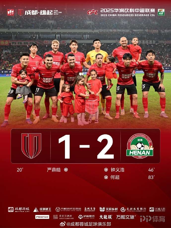中超聯(lián)賽第29輪,成都蓉城本賽季最后一個(gè)主場(chǎng)賽事,賽后官方發(fā)文。
