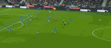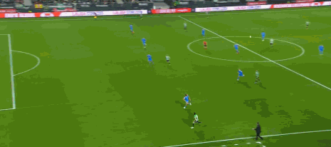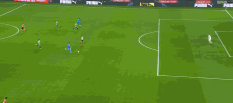 第16分鐘,不應(yīng)該,盧克曼單刀低射偏出