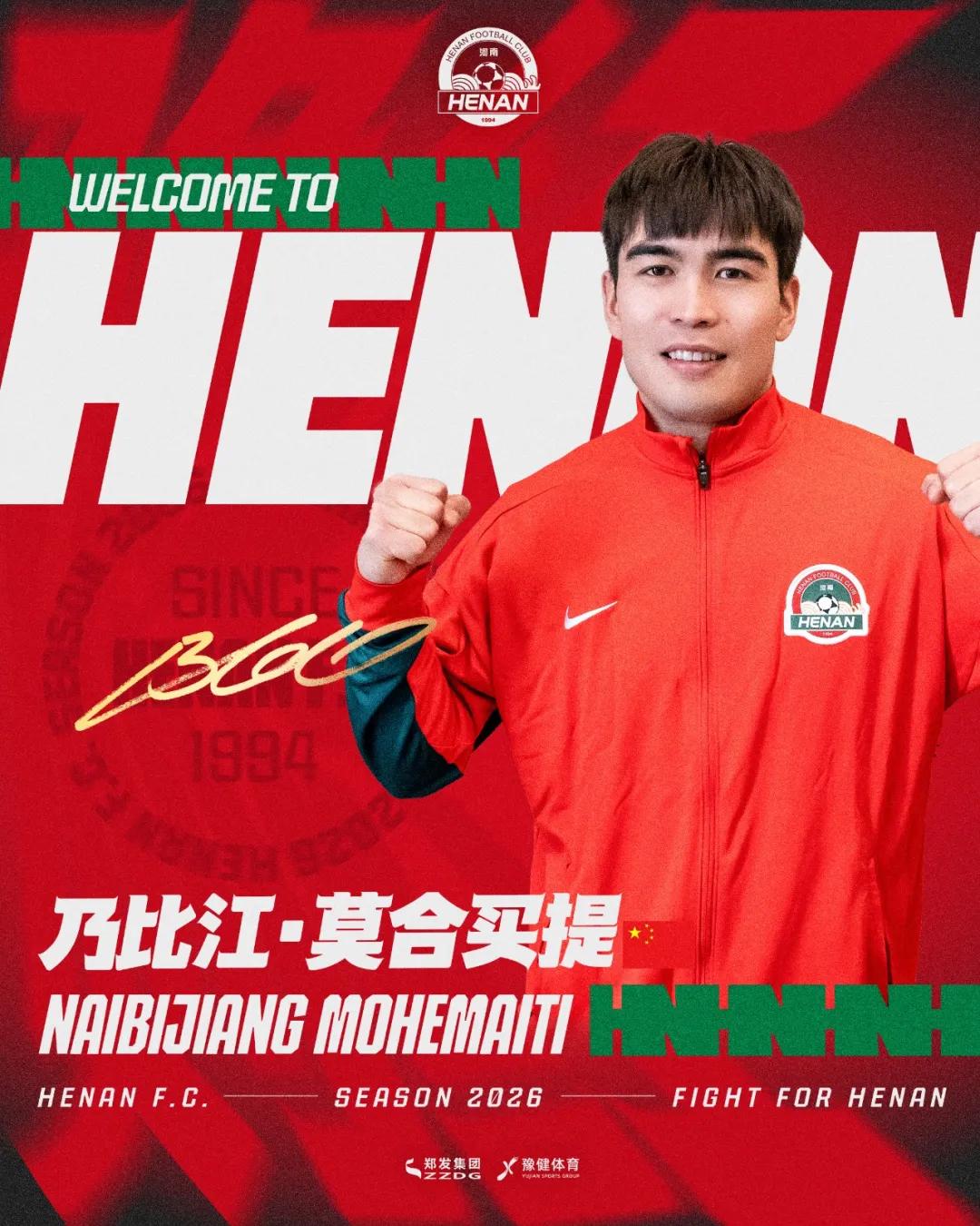 經(jīng)北京國安足球俱樂部與河南足球俱樂部協(xié)商一致,球員乃比江·莫合買提租借加盟河南俱樂部,租借期至2026年12月31日。