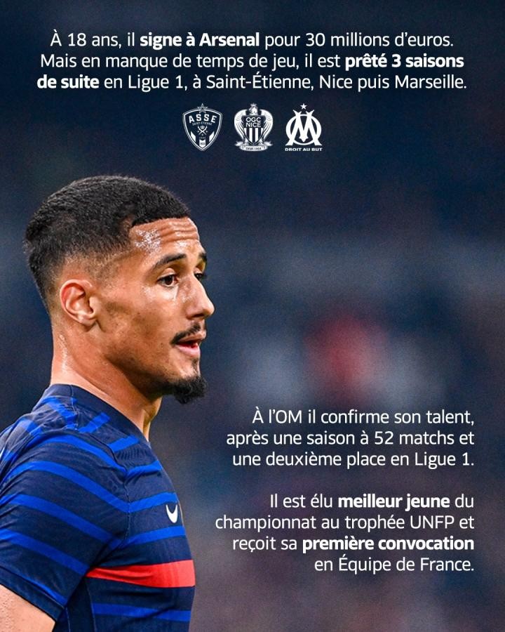 18歲時(shí),薩利巴以3000萬歐元高價(jià)加盟阿森納,不過由于缺乏出場時(shí)間,他被先后回租到圣埃蒂安、尼斯和馬賽,在馬賽,薩利巴證明了自己的天賦,單季52次出場,入選法甲最佳陣容,也入選了法國國家隊(duì)。此外,他也是2021-22賽季的法甲最佳年輕球員。