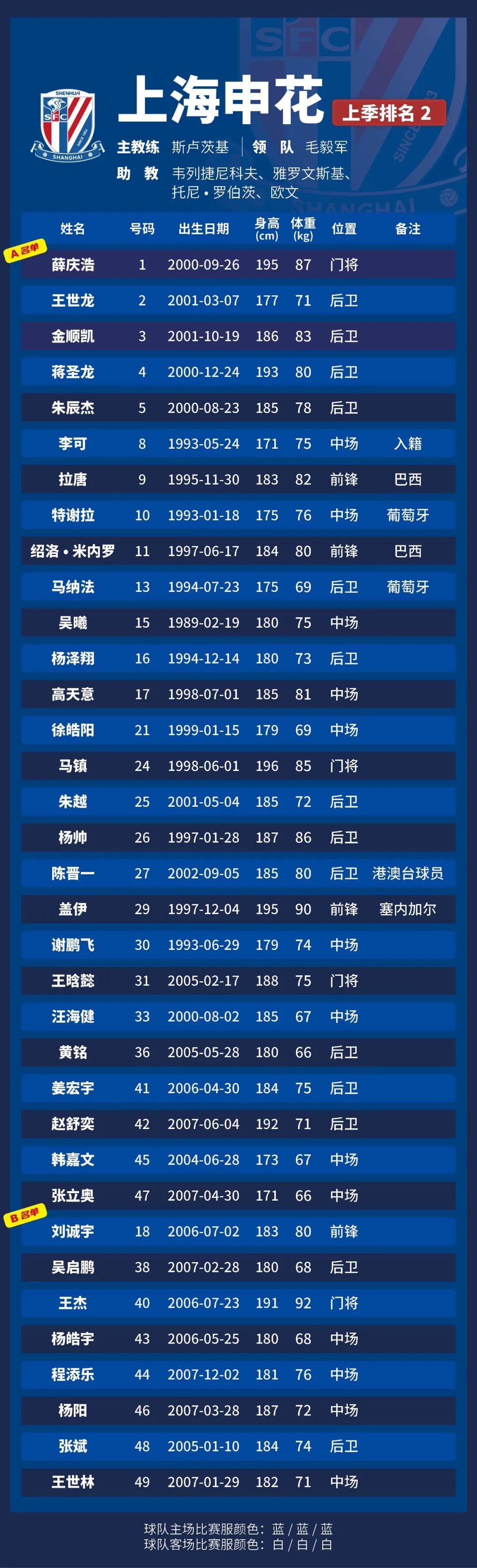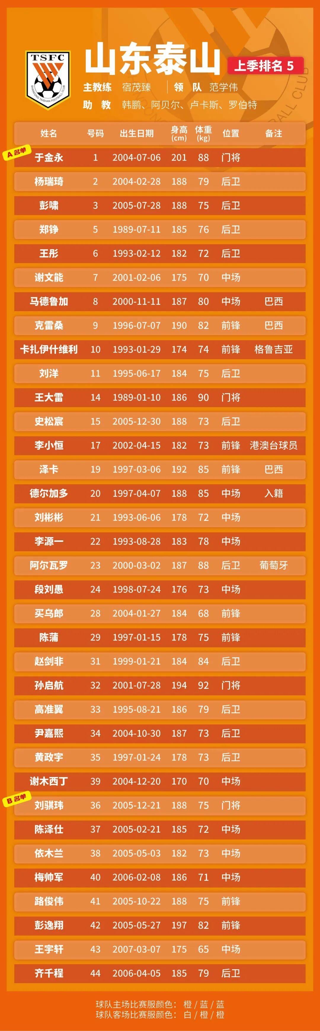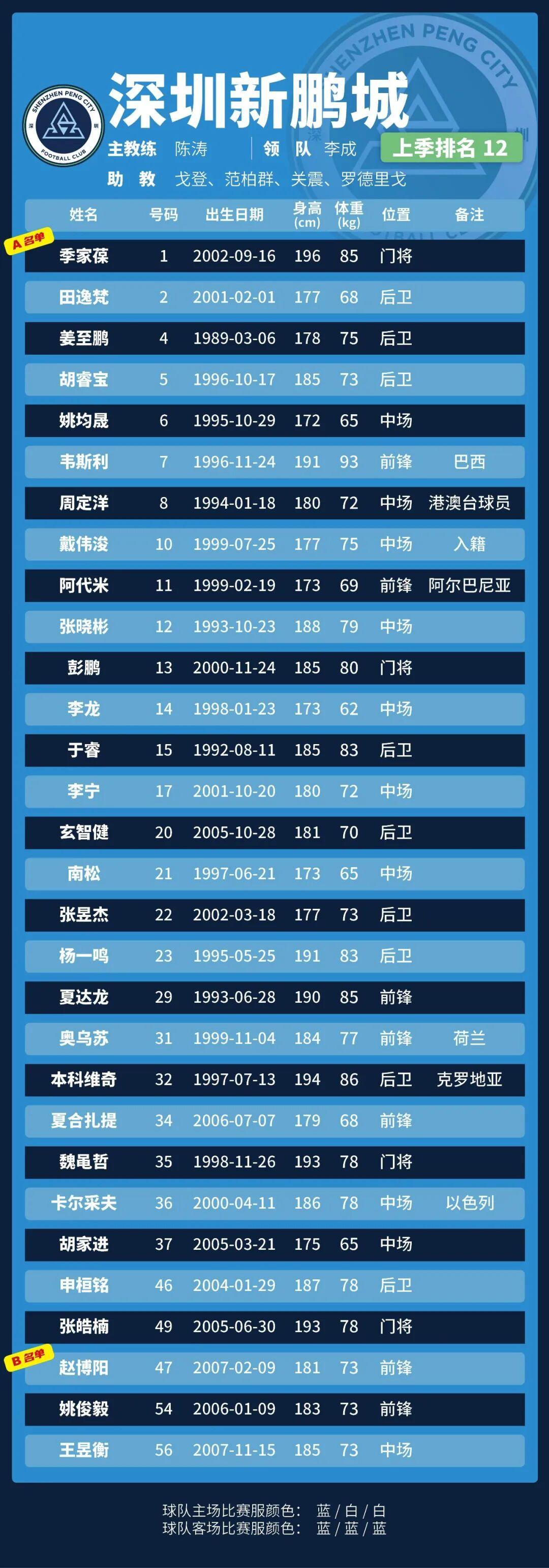 p.s.數(shù)據(jù)采用各隊(duì)中超報(bào)名表登記內(nèi)容,