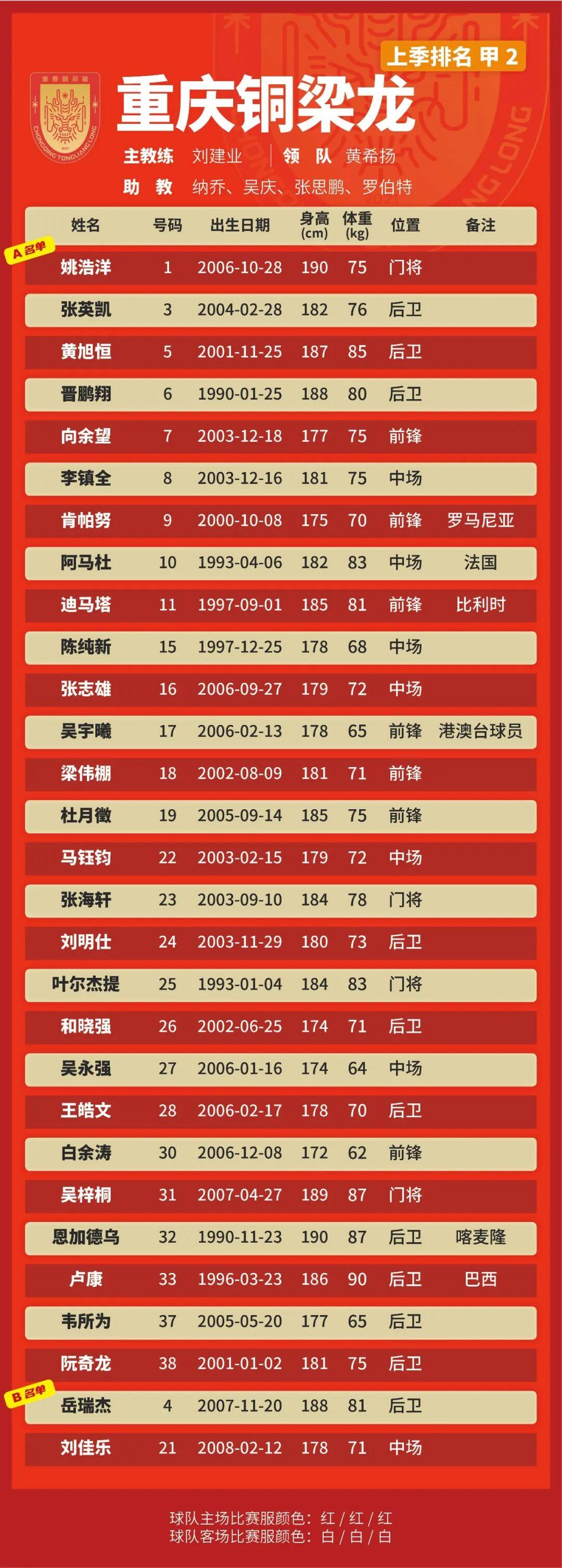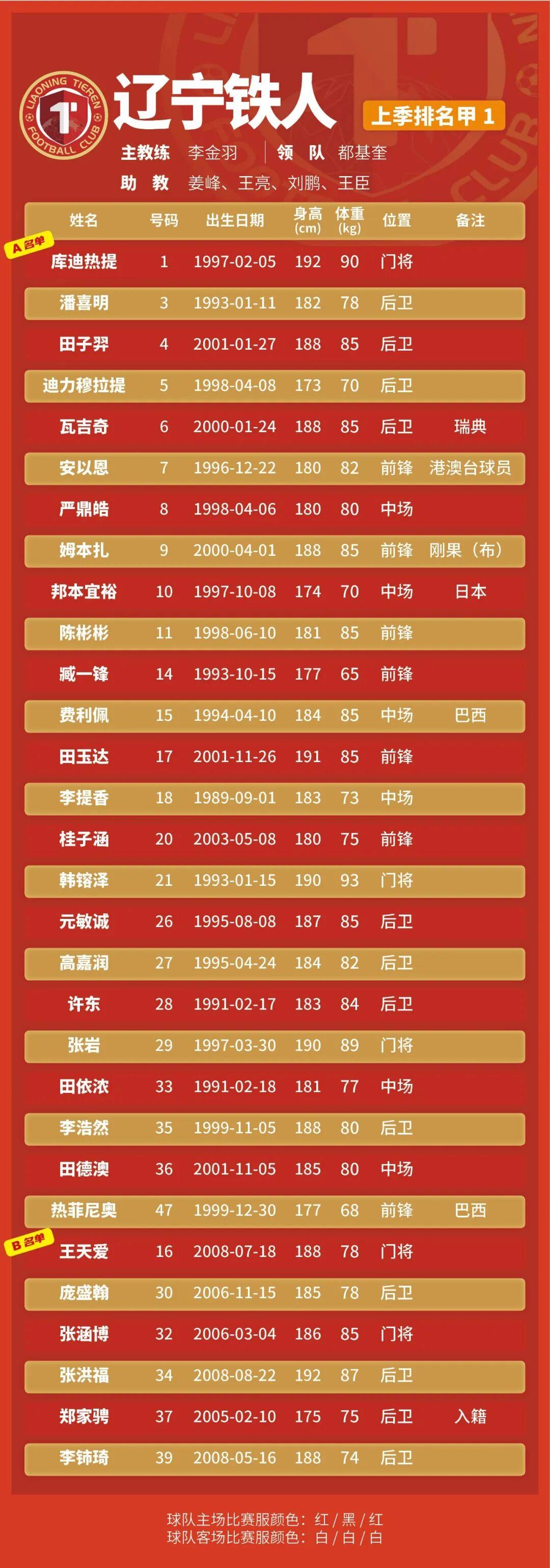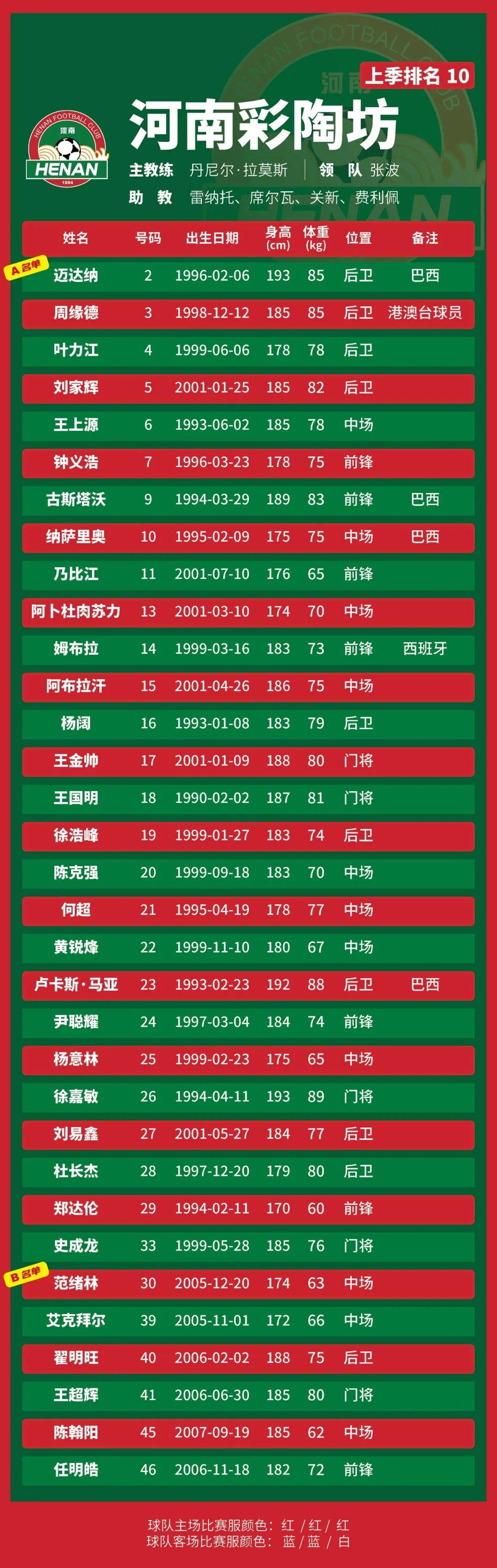 p.s.數(shù)據(jù)采用各隊(duì)中超報(bào)名表登記內(nèi)容,