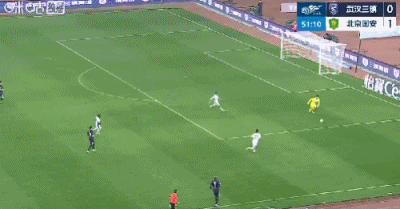 中超第1輪,武漢三鎮(zhèn)主場(chǎng)對(duì)陣北京國(guó)安,第52分鐘,王剛積極逼搶迫使三鎮(zhèn)門將方鏡淇失誤,張玉寧得球后吊射空門得手!國(guó)安2比0領(lǐng)先!