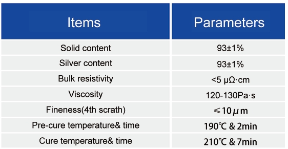 HS701-A is a pure silver fine grid paste designed for use in heterojunction solar cells. It exhibits excellent electrical conductivity and good contact with the TCO film, thus achieving a lower wet weight at equal conversion efficiency. The product also offers stable printing performance, and is compatible with printing speeds of 300-500mm/s, enabling it to meet the diverse printing process requirements of different users.