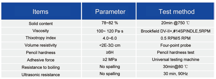 HS-430 is a one-component conductive silver paste. It is suitable for forming ferrite surface conductive layer. One typical application field is circulator. This paste has low curing temperature, high adhesion, high dry film strength. In addition, it can adapt to hot and humid application environment.