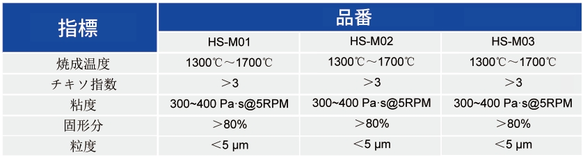 (3)HS-M03は、窒化ケイ素基板のメタライズや、高溫共焼成セラミックプロセス(HTCC)における電極形成のためのスクリーン印刷用厚膜導體ペースト