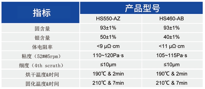 HS550-AZ與HS460-AB是分別用于異質(zhì)結(jié)電池正面與背面的銀包銅細(xì)柵漿料,具有優(yōu)秀的印刷性能,柵線具有優(yōu)良的高寬比,應(yīng)用此兩款漿料制成的組件可靠性好,分別為50%和40%的銀含可以很好滿足客戶的降本需求。